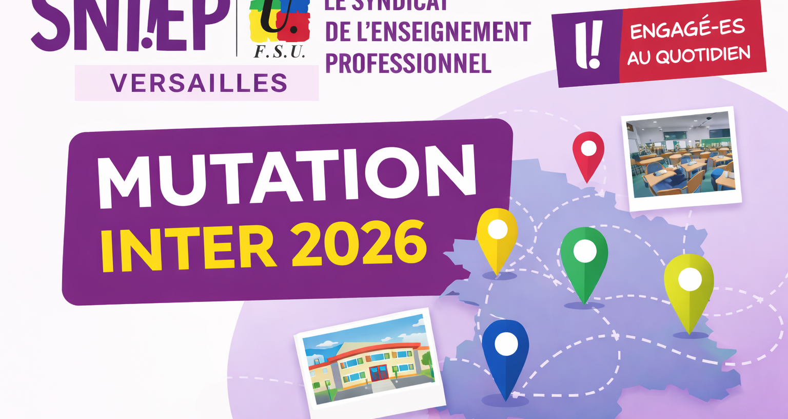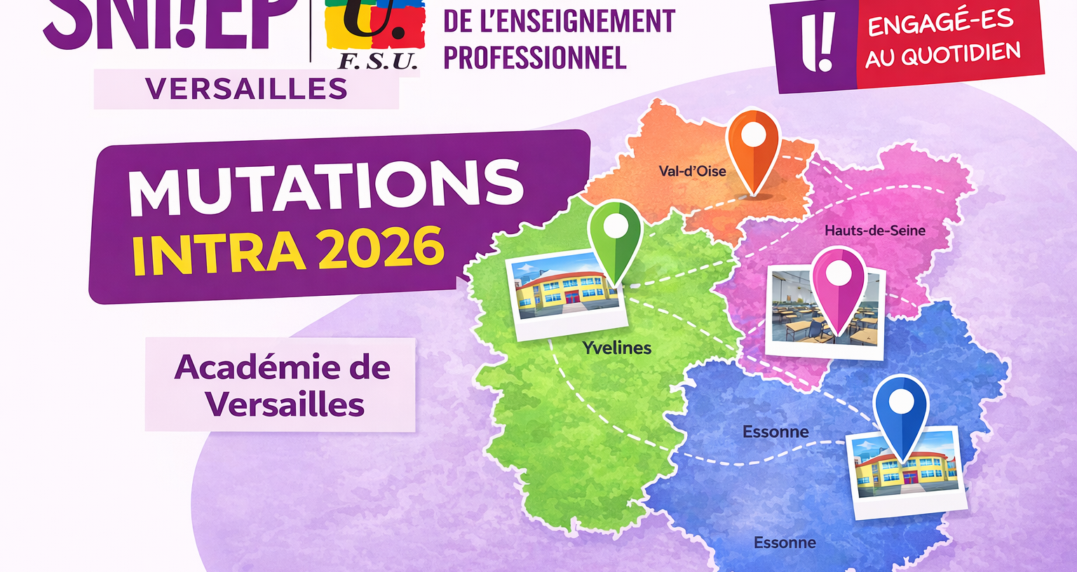 Le SNUEP-FSU Versailles organise deux réunions en visioconférence pour accompagner les collègues dans le cadre des mutations intra-académiques. 📅 Dates…